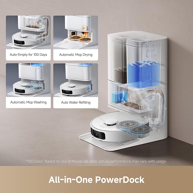 All-in-one PowerDock: automatic mop washing, water refilling, and air drying