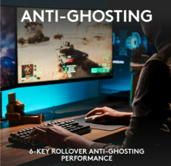 - Six-key rollover anti-ghosting performance lets you input more than one command simultaneously